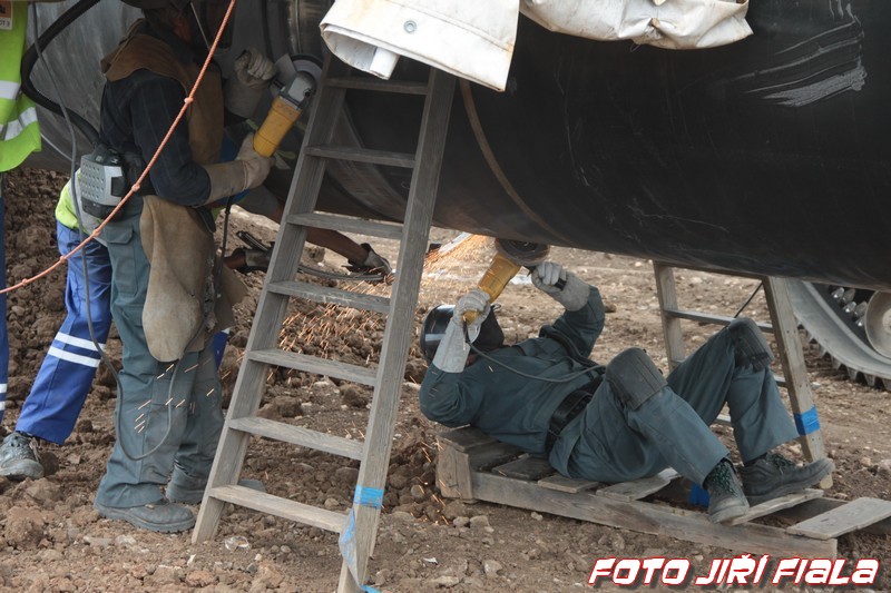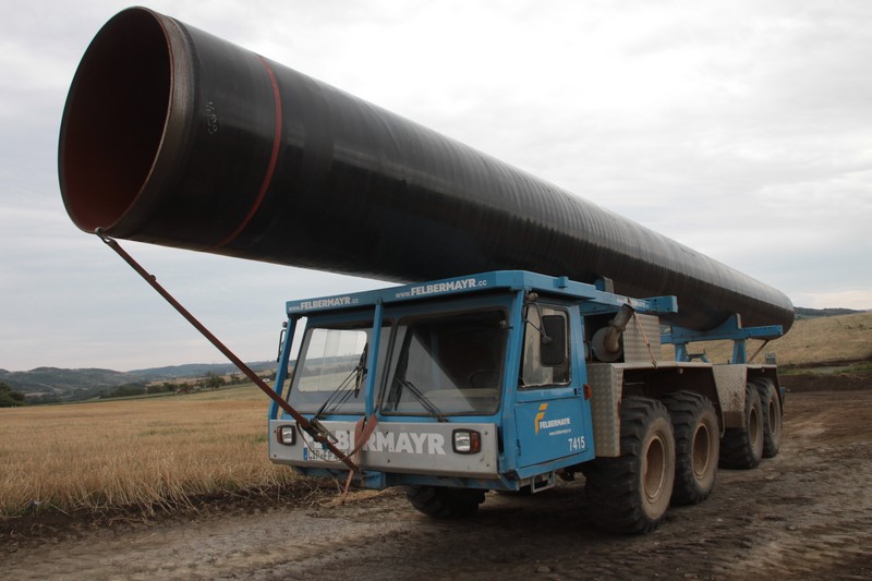 Jelikož však nežijeme v rovinatém Holandsku a i trase se klikatí, je nutno potrubí o průměru 1400 mm předem naohýbat do požadovaného tvaru. Pro tento účel je sestrojen mobilný hydraulický lis – ohýbačka firma CRC EWANS z Kanady specializující se na stroje a zařízení pro výstavbu plynovodů a ropovodů.
