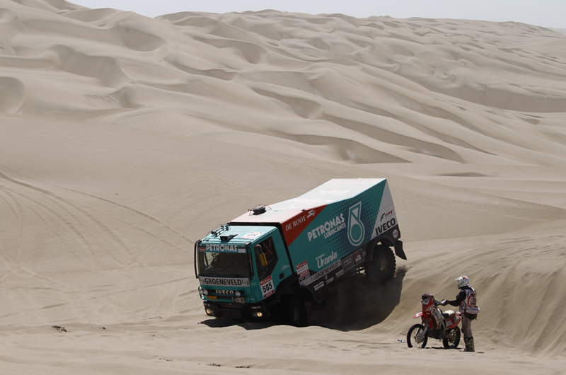 Dnešní etapou sestoupili závodníci z hor a vydali se podél pobřeží do dalšího peruánského cíle Nasca. Ačkoli se může zdát trasa po pláži pohodou záležitostí, je zrádná a řidiči si musí hlídat ideální stopu na kraji moře, aby nezapadli do měkkého písku na pláži. Z našich opět skvěle rozjel etapu Jaroslav Valtr na Liazu se startovním číslem 530, dojel na šestém místě.