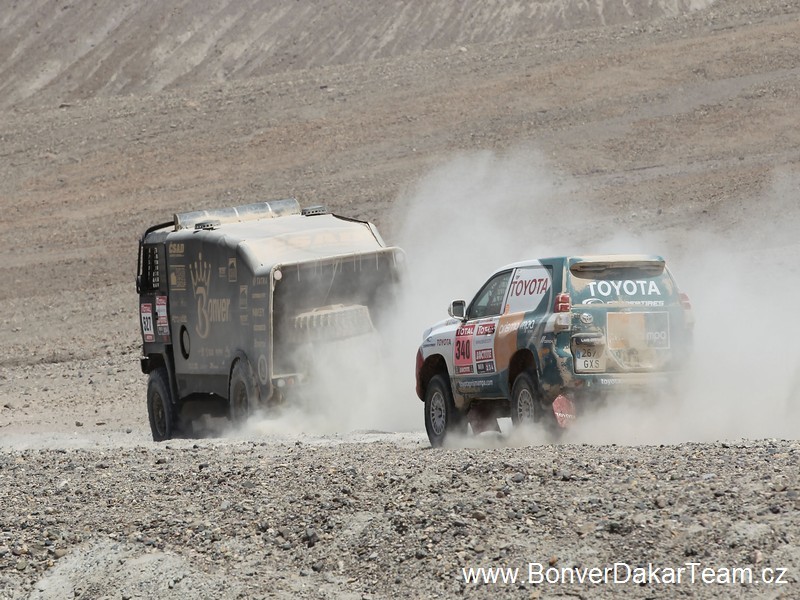 Nesmíme však zapomínat na naše další jezdce a vozy, které pokračují dosud směrem k peruánské Limě. Dakar ještě nekončí a ve zbývajících etapách se ještě může leccos odehrát a pořadí zcela změnit. Jet na vítězství znamená jet na hranici možností techniky a schopnosti celé posádky stále se plně koncentrovat na každý záhyb a nerovnost v dlouhých a únavných etapách.