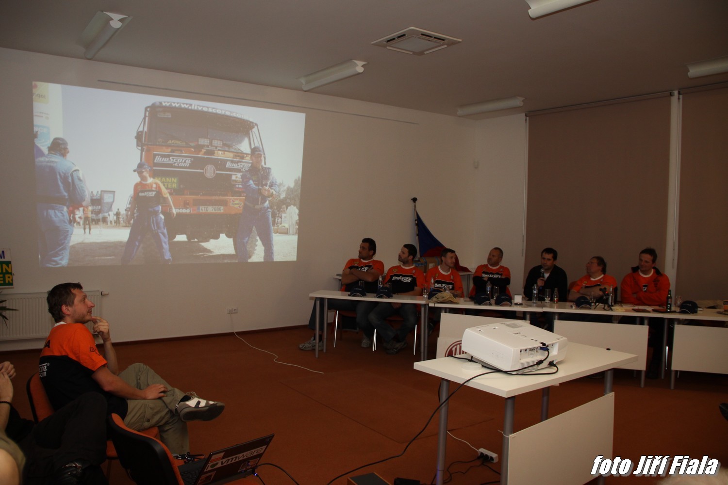 Večerem provázel Vojtěch Morávek mladší, který se (letos poprvé v novinářském voze spolu s kameramanem Janem Husákem) staral o informační servis do Čech. Během vyprávění se mohl každý zeptat na cokoli okolo závodního vozu, osobních pocitů či vlastních zážitků. Z dotazů bylo patrné, že zúčastnění hosté jsou opravdovými fanoušky a znalci. Kladené otázky byly často velmi odborného rázu. Soutěžilo se DVD z loňské soutěže a na závěr si každý mohl domů odnést plakát s podpisy všech zúčastněných členů týmu. Odměny – dortu v podobě své Tatry – se dočkal i Tomáš Tomeček.