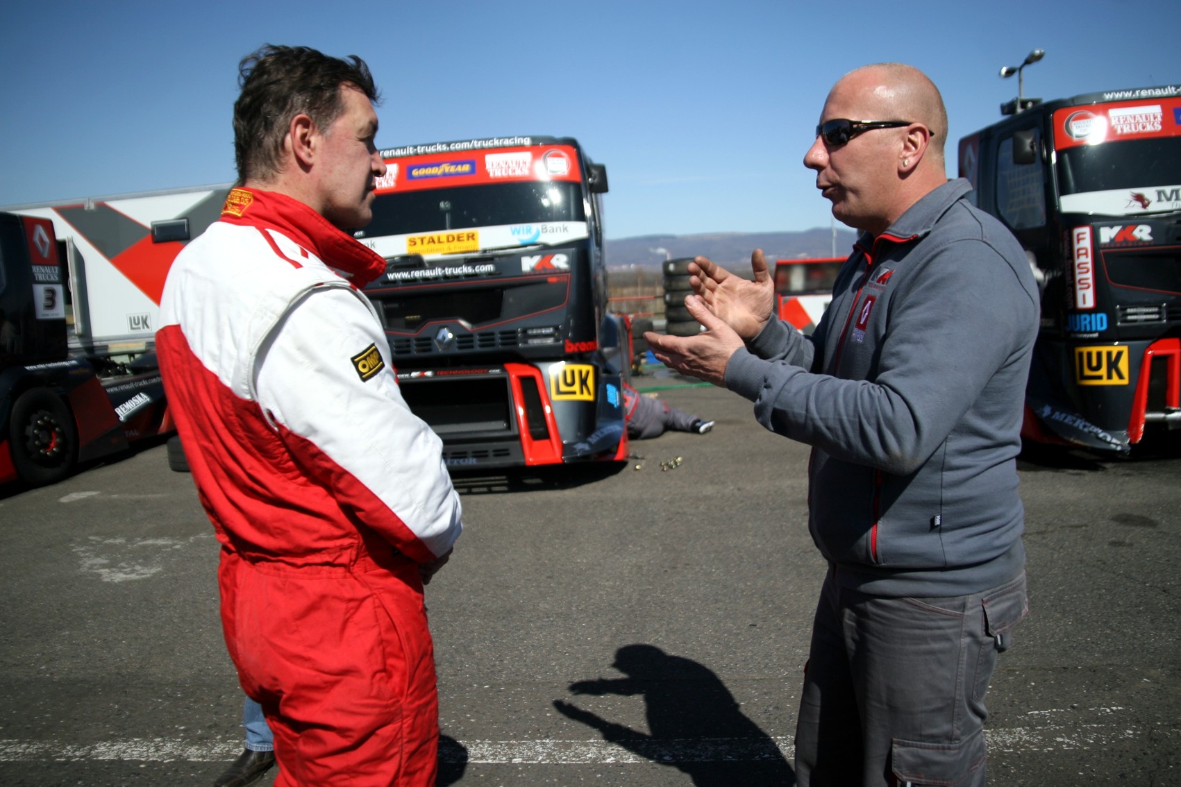 Většinou si závodní okruh pronajímají týmy samostatně, ale toto pondělí a úterý bylo výjimkou. V termínu, který byl původně určen pro závodní speciály z dílny Maria Kresse se po vzájemné dohodě v depu sešly dva vozy Buggyra, tři vozy MAN – loňský vítěz Němec Jochen Hanh, Fin Mika Mäkinen a nováček z Německa s modro-bílým speciálem mnichovské automobilky.