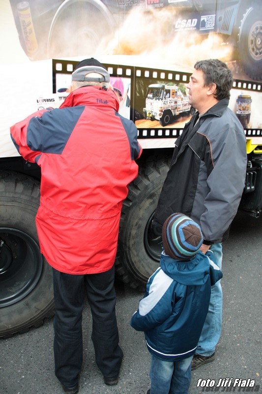 Jak už bylo na našich stránkách avizováno, při přesunu techniky a materiálu do francouzského přístavu Le Havre, udělal tým Loprais krátkou zastávku v Praze 5 Butovicích před obchodním centrem Galerie. Kolona vozidel dorazila s mírným zpožděním, takže tisková koncerence začala skoro o půl hodiny později, stejně jako následné setkání s fanoušky a diváky na parkovišti u závodních aut. Na setkání s odbornou veřejností byl představen kompletní tým pro ročník 2012.