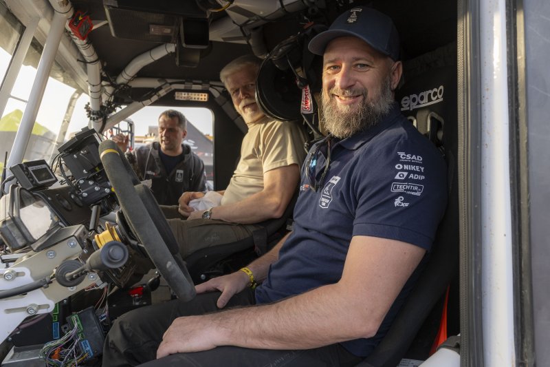 Hned první den své návštěvy zvládl oběd se saudskoarabským princem, setkání s vedením A.S.O., která celou rallye organizuje a také s několika Čechy, kteří se den před začátkem soutěže ještě pilně připravovali. Začal u týmu Fesh Fesh, kde bude mít také své zázemí, pozdravil se s Martinem Prokopem a jeho týmem, navštívil Aleše Lopraise, a evidentně velkou radost udělal návštěvou motorkářům – Adamovi Peschelovi, Davidu Pabiškovi či Jaromíru Romančíkovi. K závěru dlouhého dne se stihl ještě projet s Tomášem Vrátným v jeho nové Tatře FF7 4×4 NewGen.