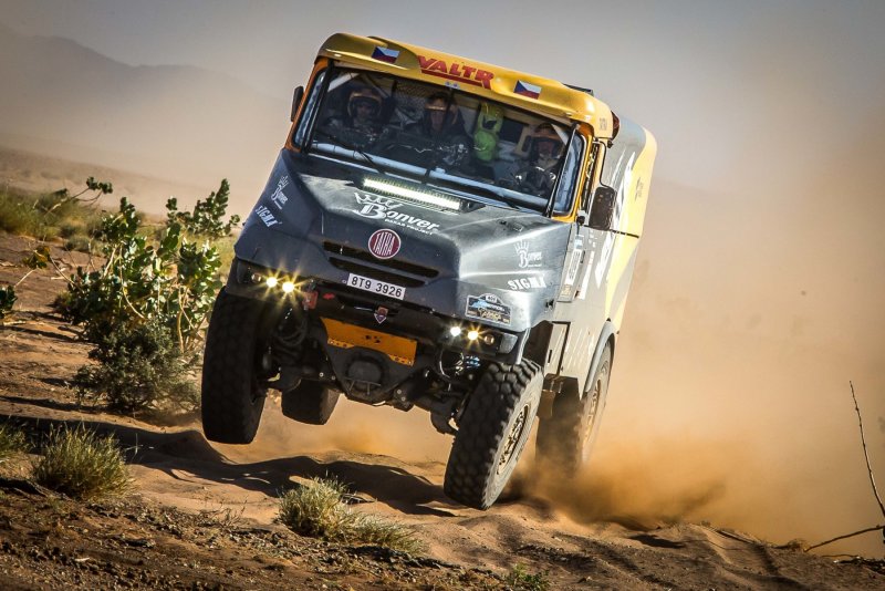 atra se startovním číslem 401 startovala po famózním výsledku z předchozího dne, kdy obsadila čtvrté místo v kombinovaném hodnocení s auty, jako první kamion. „Jet na špici znamená jet takzvaně první stopu a to nemusí být vůbec jednoduché. Kromě toho, že je to obtížné na navigaci, to je náročnější třeba v dunách,“ popisuje Tomáš Tomeček a hned pokračuje: „Foukalo tak silně, že jsme neviděli dál než 20 metrů dopředu. Bylo to velmi náročné, protože jsme věděli, že si nemůžeme dovolit navigační ani jezdeckou chybu. Byla to velmi rychlá etapa, často jsme jeli na omezovač, tedy 150 km/h.“