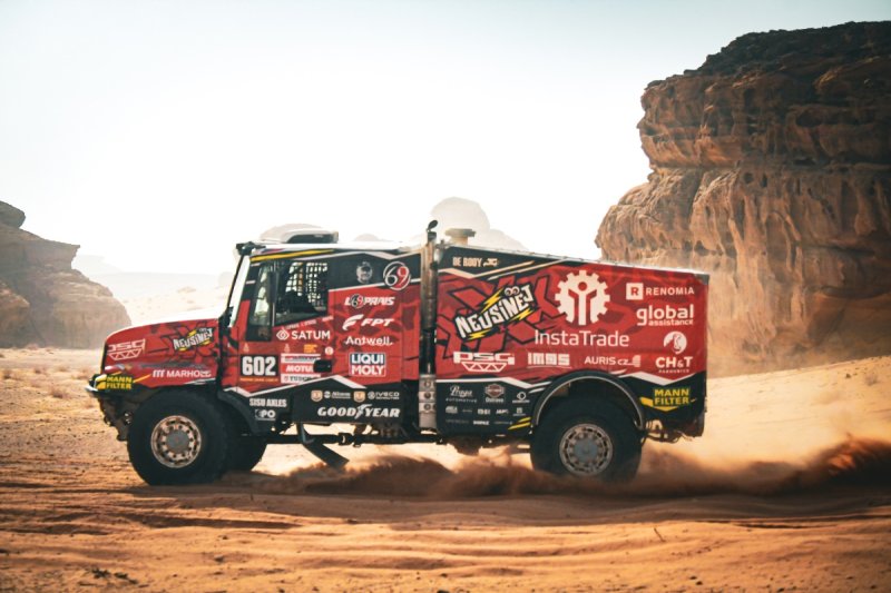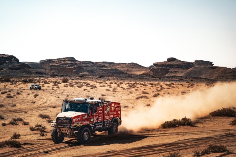 Martin Macík si dnes dojel pro letošní druhé etapové vítězství v kategorii kamiónů a navázal plynule na včerejší 1. místo v půli maratónské etapy. Dokazuje tak, že mu těžké podmínky svědčí a získává v nich, tak jako dříve ve Chrono48 či pustině Empty Qouter. Pojistil si zatím tak průběžné vedení o dalších 5 minut na druhého Mitchela van den Brinka, který dnes dojel až třetí za mladým Kayem Huzinkem. Aleš Loprais dojel čtvrtý a drží si i nadále třetí místo průběžného pořadí se skoro hodinovým odstupem na Mitchela van den Brinka a necelou minutou náskoku před dotírajícím Litevcem Zalou. Michal Valtr ustálenou jízdou s konzistentním výkonem dojel dnes devátý a posunul se už na sedmé místo průběžného pořadí. Hned za ním přijel Karel Poslední jemuž patří celkově 14. místo. Martin Šoltys se opět trápí s novou technikou, která byla dokončena těsně před odjezdem do přístavu v Barceloně a nezbyl čas ne delší testování.