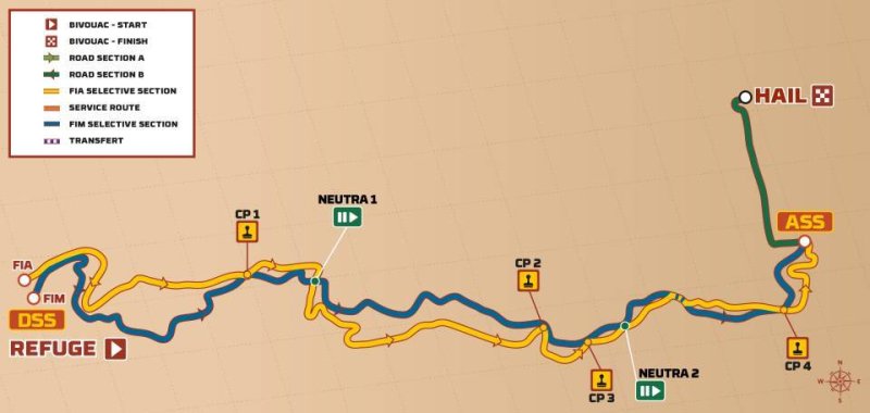 Závodníci se dnes vydali z bivaku v poušti zpět ke svým týmům do pohodlí a zázemí z noci pod stany. Čekala na ně druhá polovina maratónské etapy do Hailu s délkou 372 km. Začátek a konec opět kamenitým, střední pasáž písečná a to vše jen se zbylými rezervními pneu po první polovině….